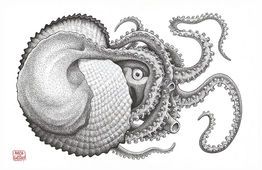 Art Print: Argonaut Octopus - 11″ x 17″ color print on white heavyweight card stock.