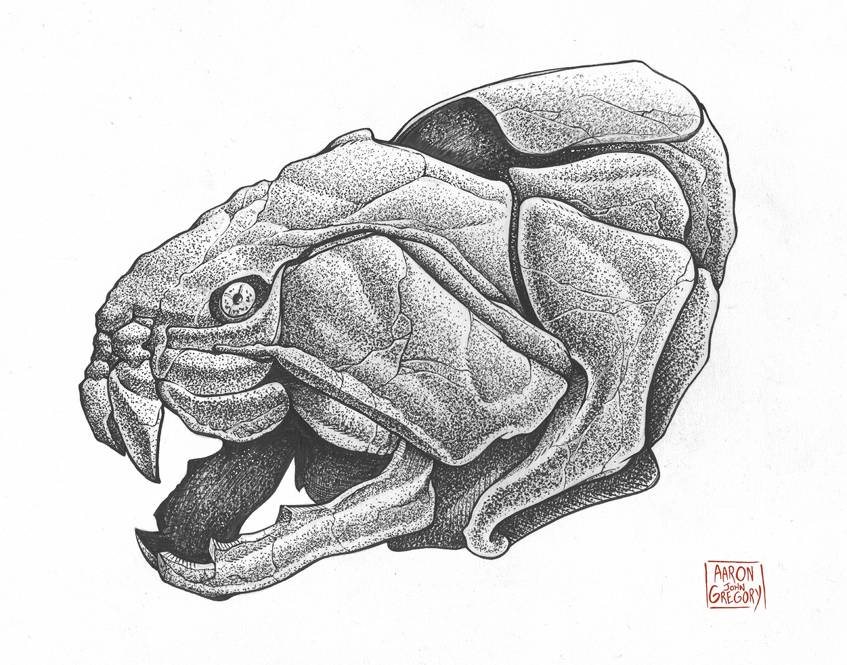 Art Print: Dunkleosteus Skull - 11″ x 14″ color print on white heavyweight card stock.