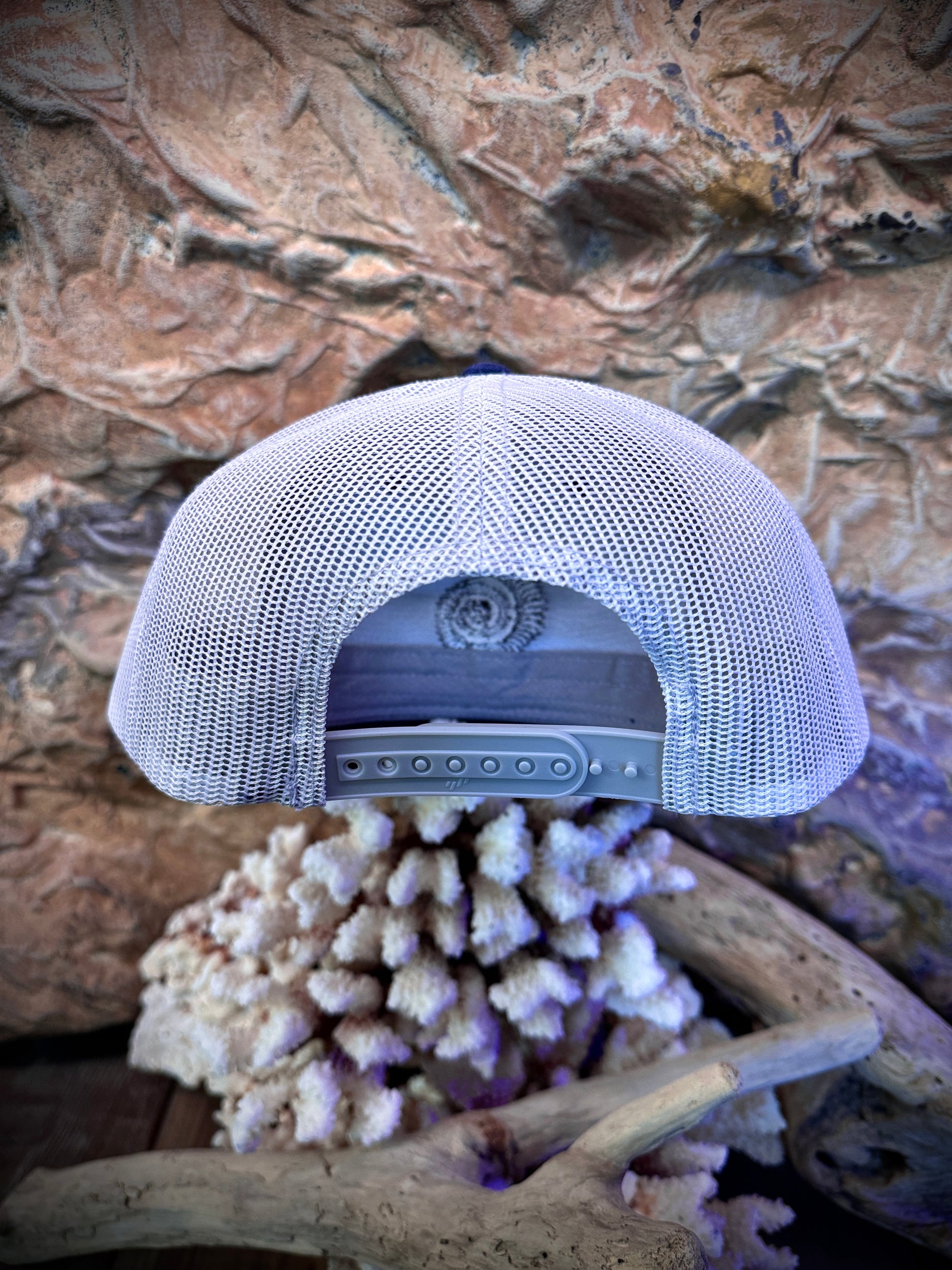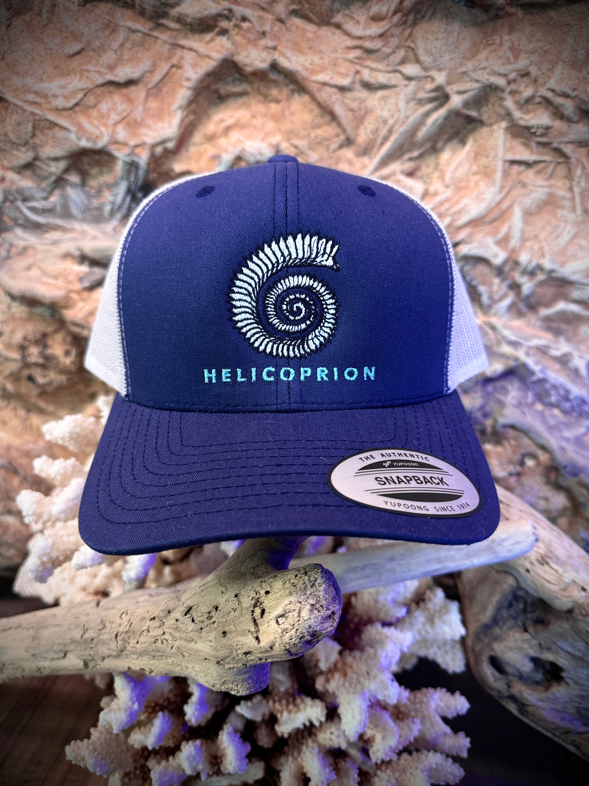 Embroidered Helicoprion Tooth Whorl graphic on a high-quality, Snapback trucker cap. Four different color ways to choose from!