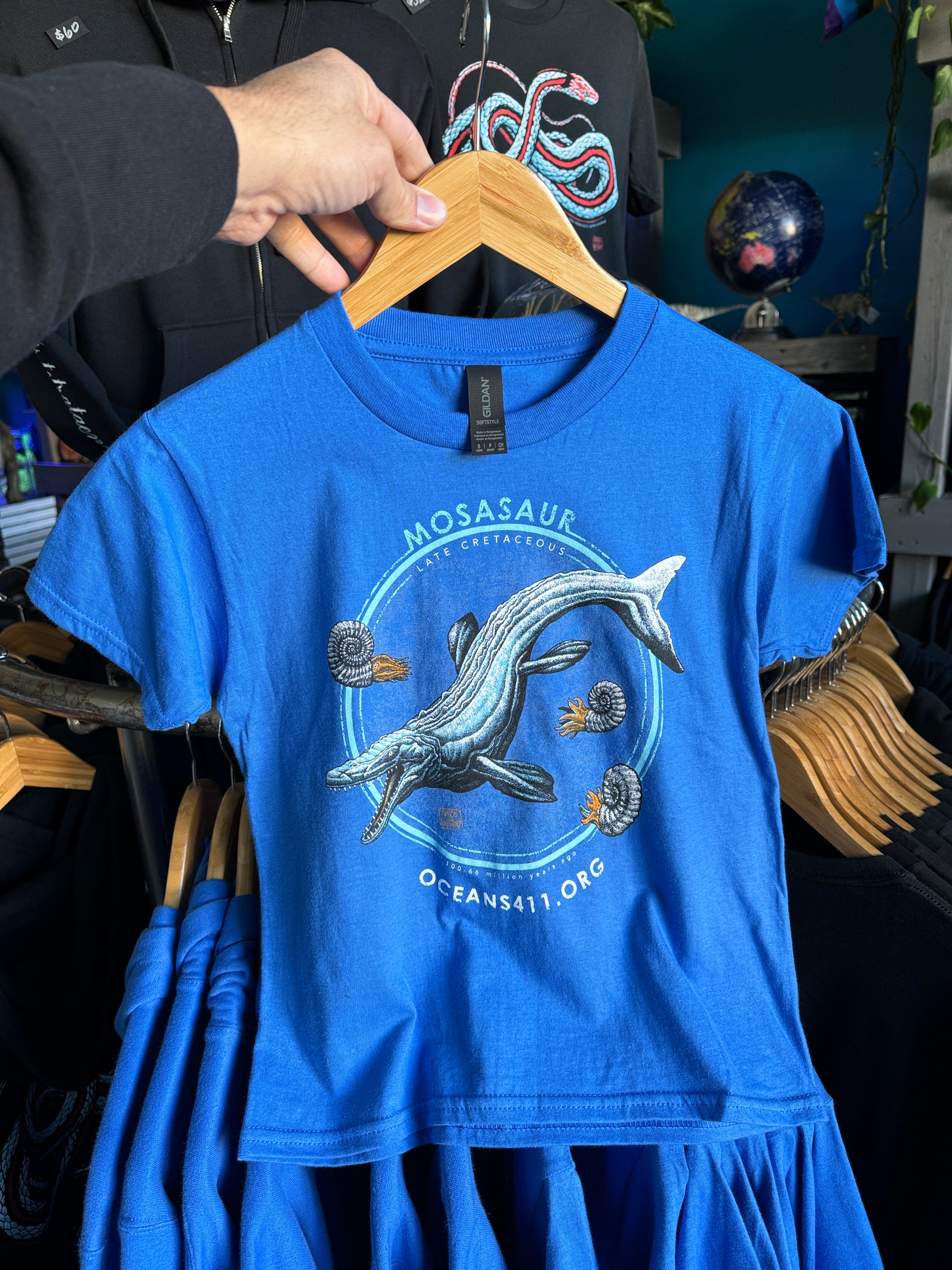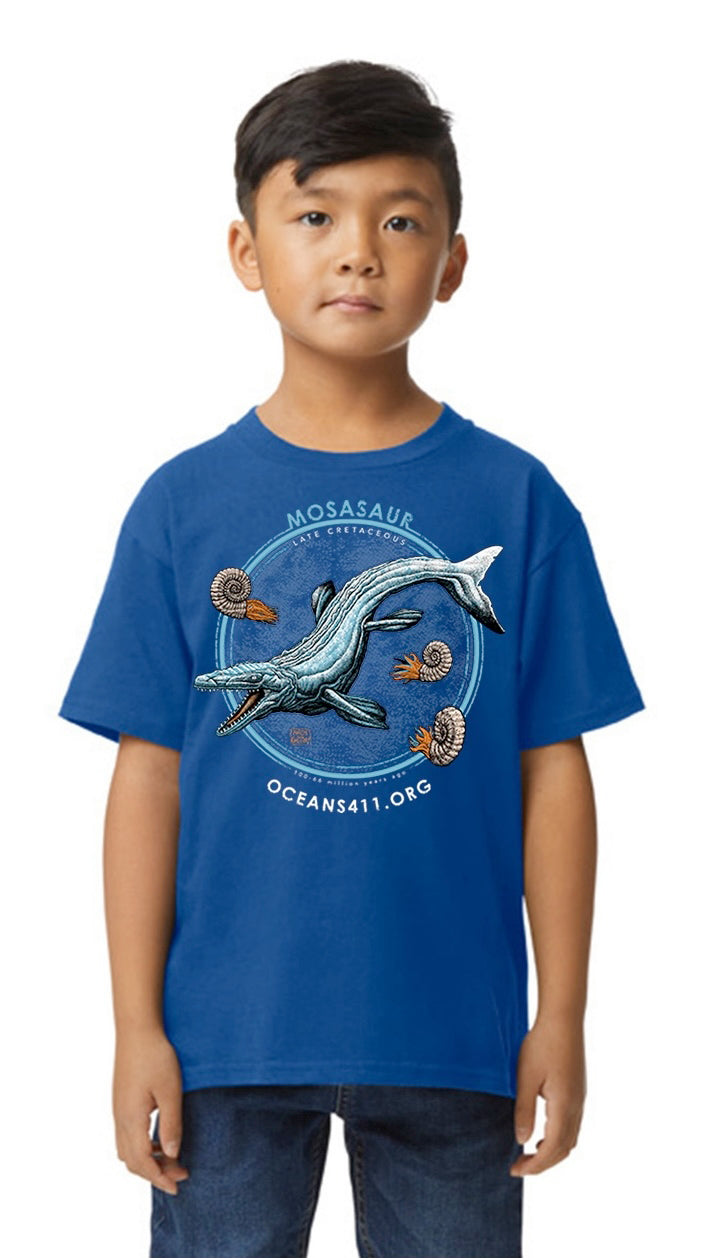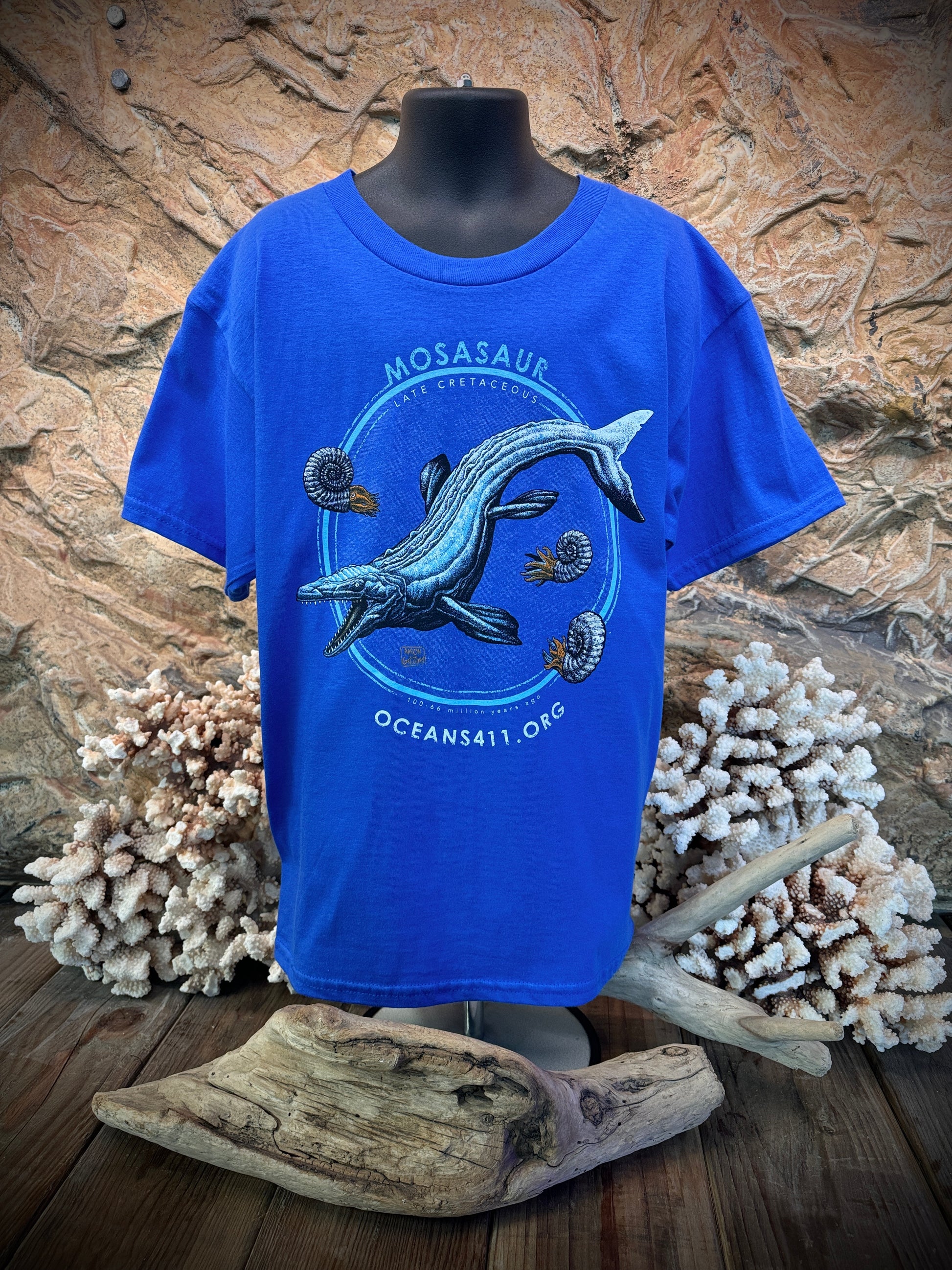 $10 from each of these beautiful Mosasaur shirts or hoodies is donated to their educational program! To learn more, visit oceans411.org