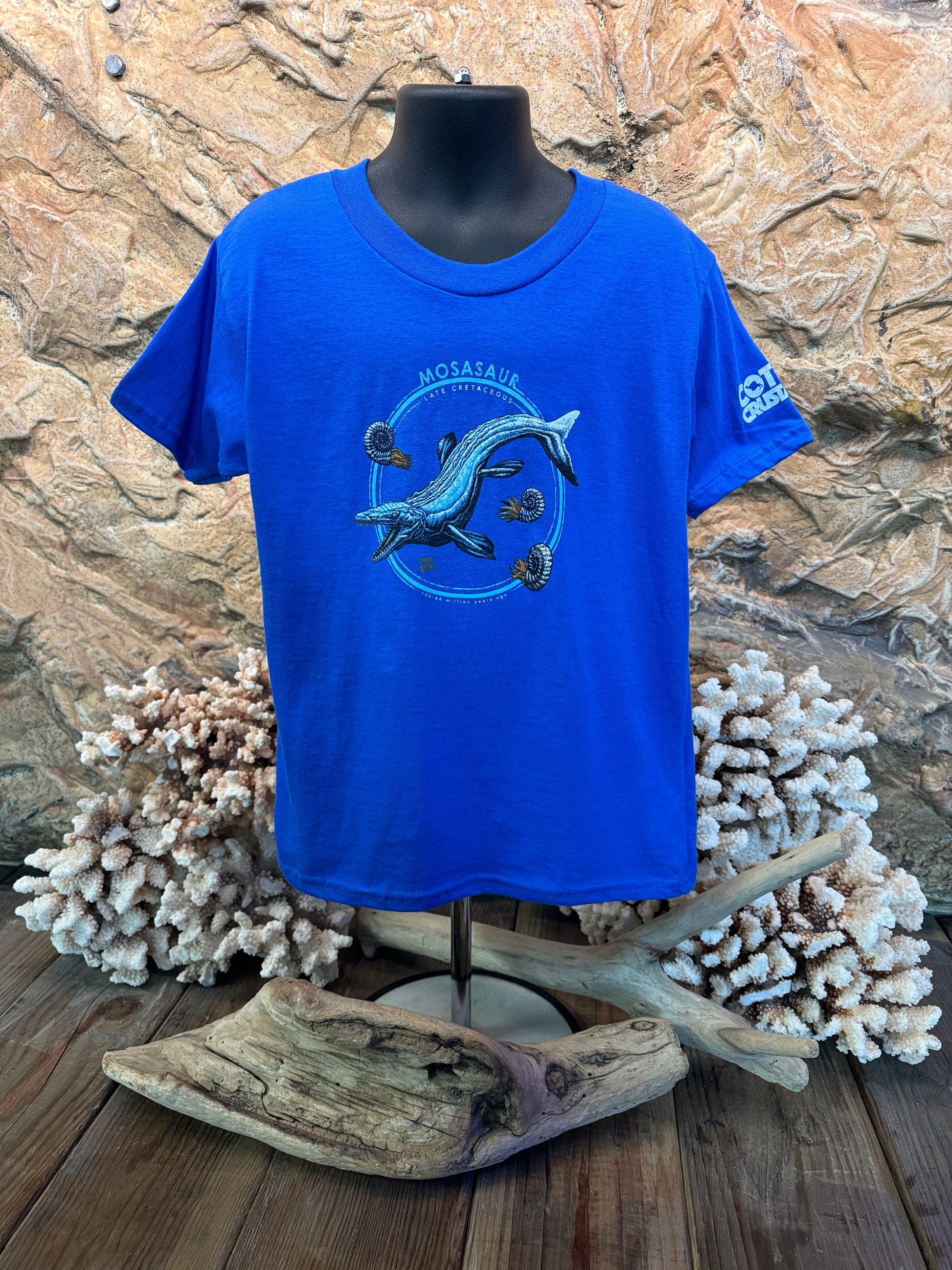 The most iconic marine reptile of all, the Mosasaurus, will be formidable and fierce on the front of your favorite young prehistoric animal fan.