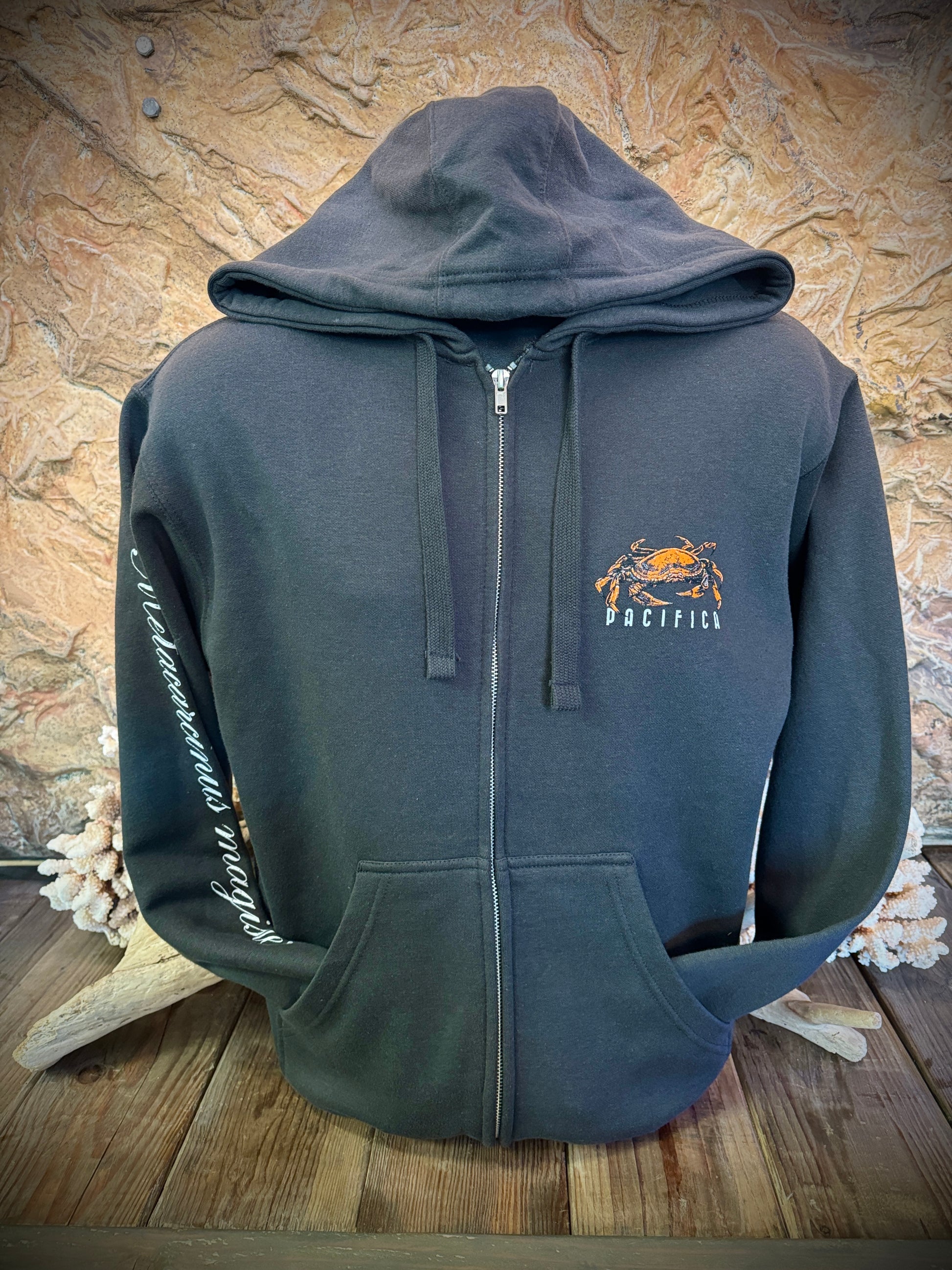 Our extremely popular Dungeness Crab / Pacifica California hoodie is now available for the first time ever as a zip-up!