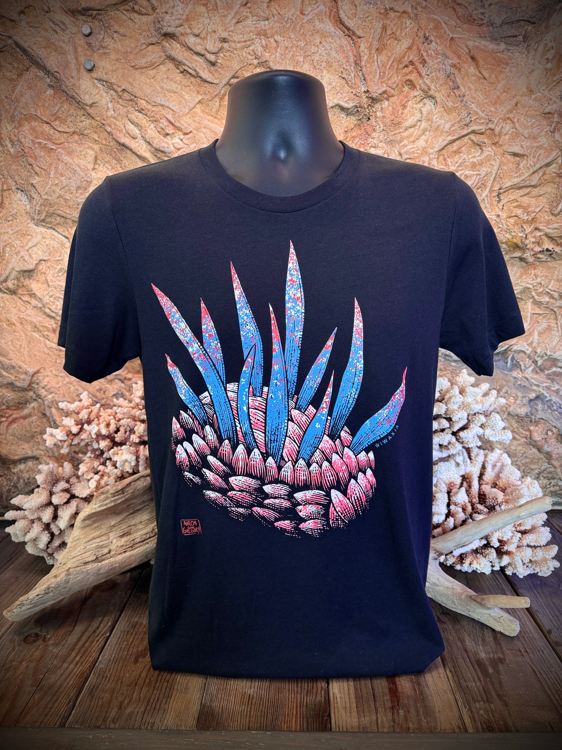Wiwaxia beautifully screen printed on black, 100% combed cotton, unisex t-shirt.